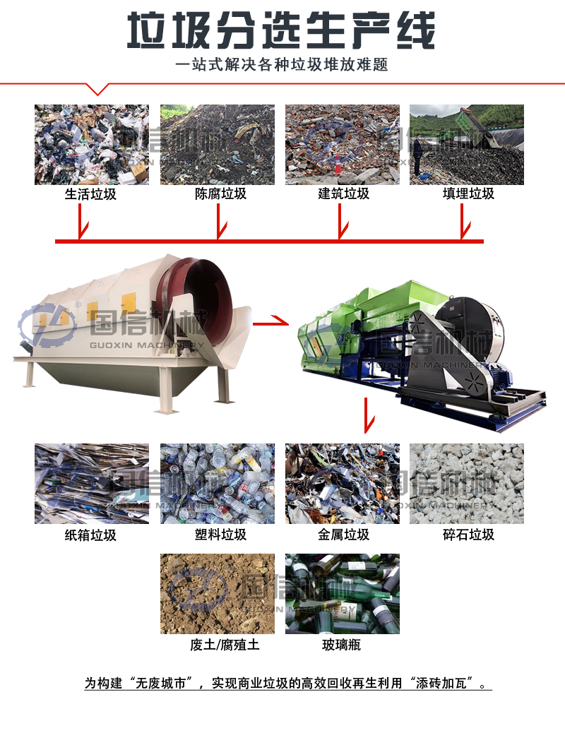 裝修垃圾分選方案主要是由給料系統(tǒng)、篩選系統(tǒng)、分揀系統(tǒng)、粉碎系統(tǒng)等組成。整套生產(chǎn)線采用自動分揀,節(jié)省人力,篩選效率高。通過對裝修垃圾進行篩分、風選等工藝,分選出金屬、木頭、塑料、玻璃、再生骨料等,實現(xiàn)資源回收再生利用,很好的解決裝修裝潢垃圾污染環(huán)境難題。